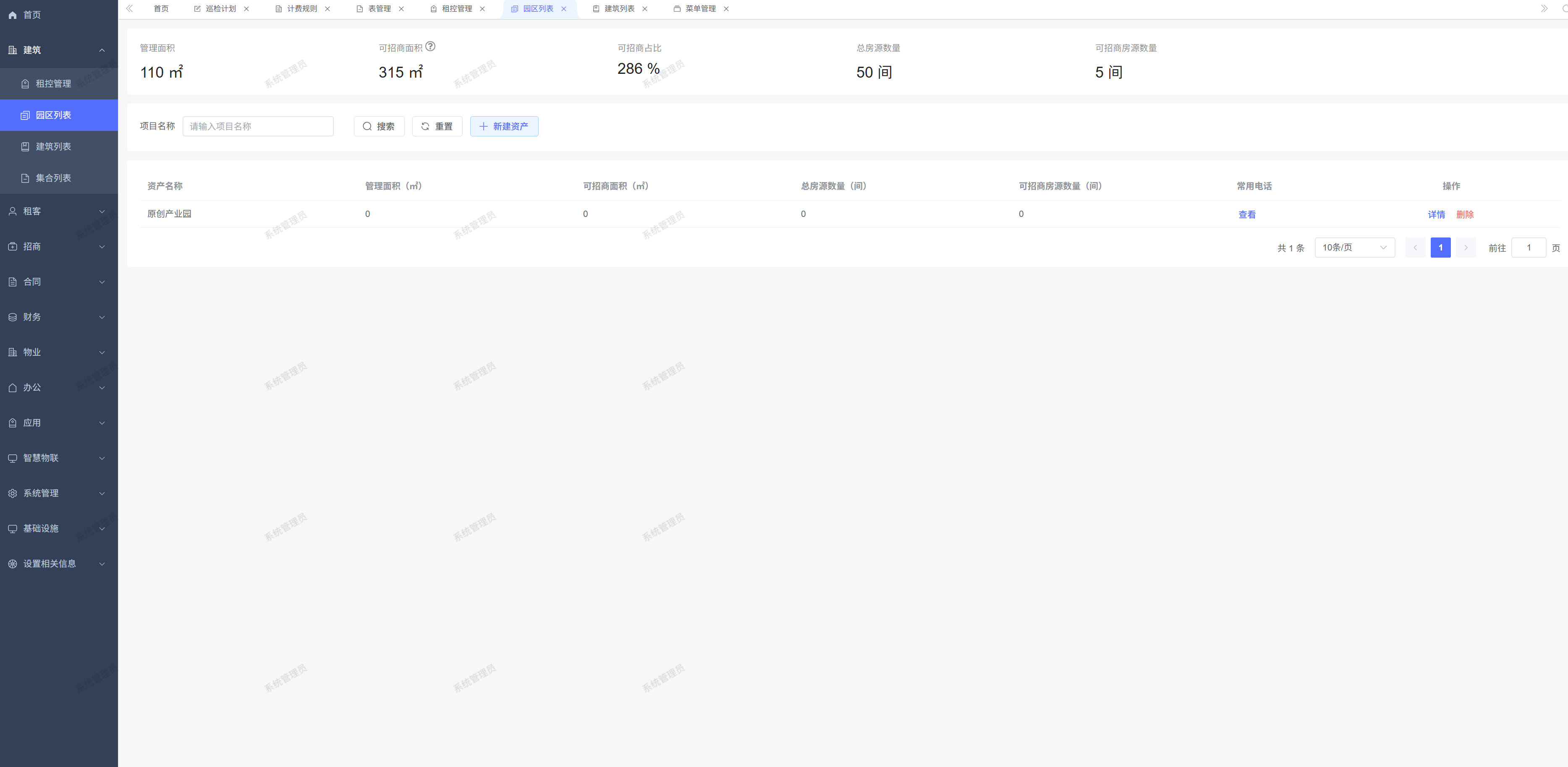 友情提示: 该系统中资产、建筑、项目三者是一个意思。
