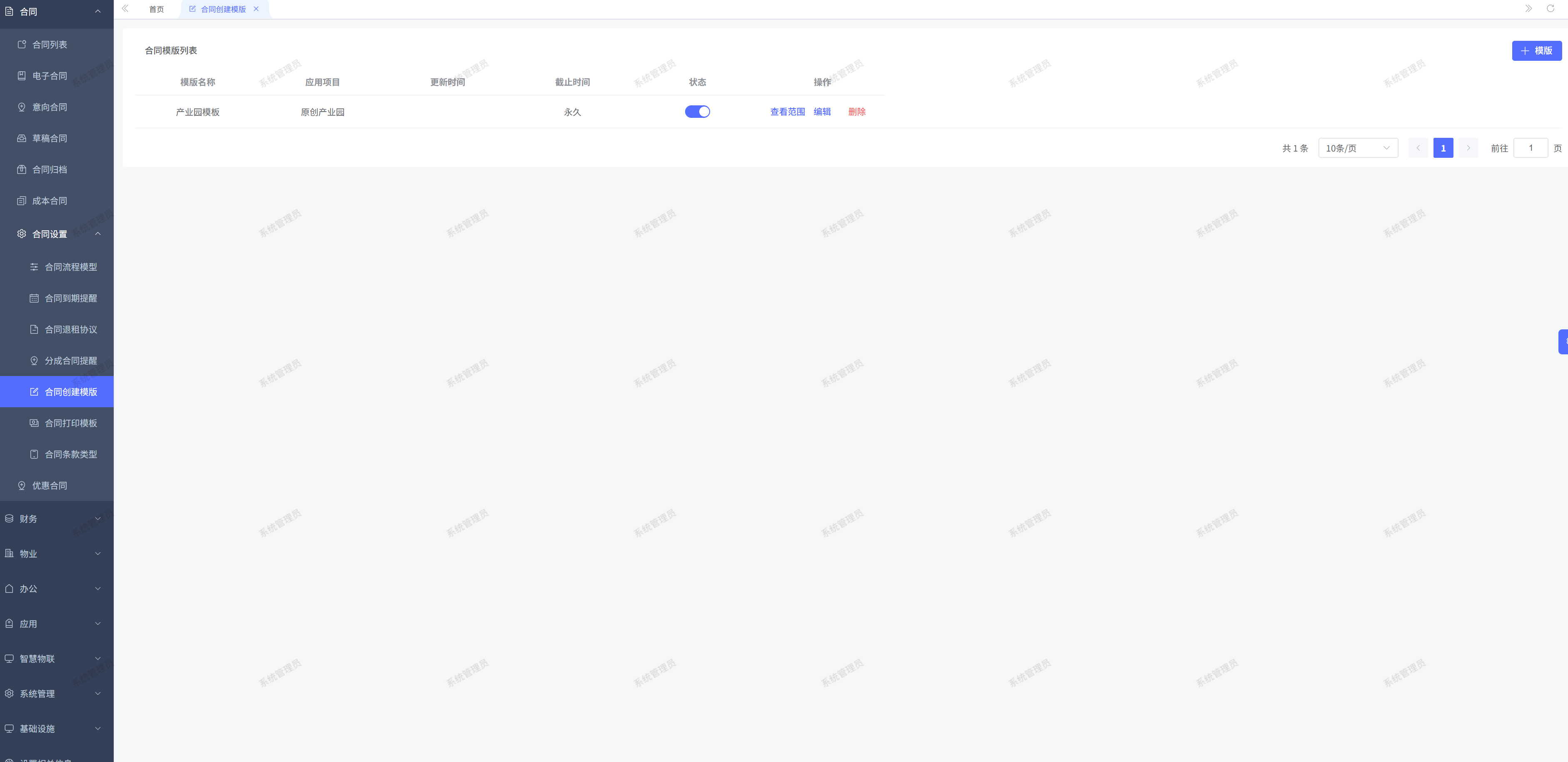 对应 [资产管理系统 -> 合同 -> 合同设置 -> 合同创建模板] 菜单,对应 xhrt-admin 项目的 @/views/contract/setting/templateContractList 目录