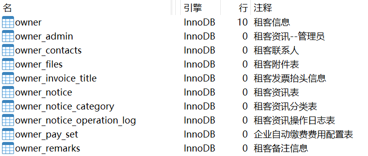 以 owner_ 作为前缀的表,表结构如下: