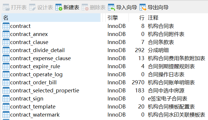 以 contract_ 作为前缀的表,表结构如下: