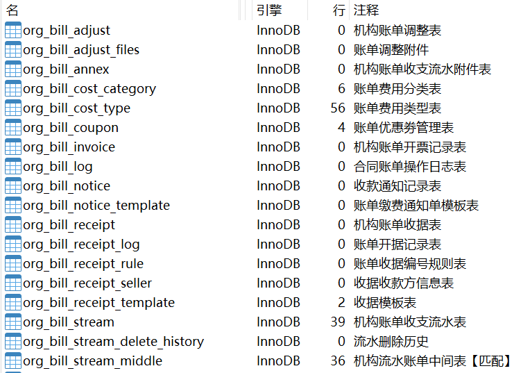 以 org_bill_ 作为前缀的表,表结构如下: