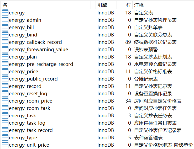 以 energy_ 作为前缀的表,表结构如下: