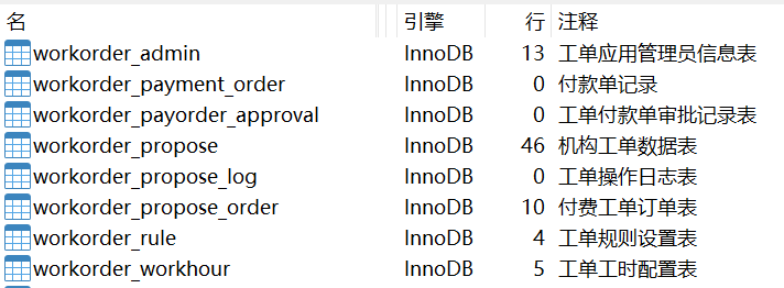 以 workorder_ 作为前缀的表,表结构如下: