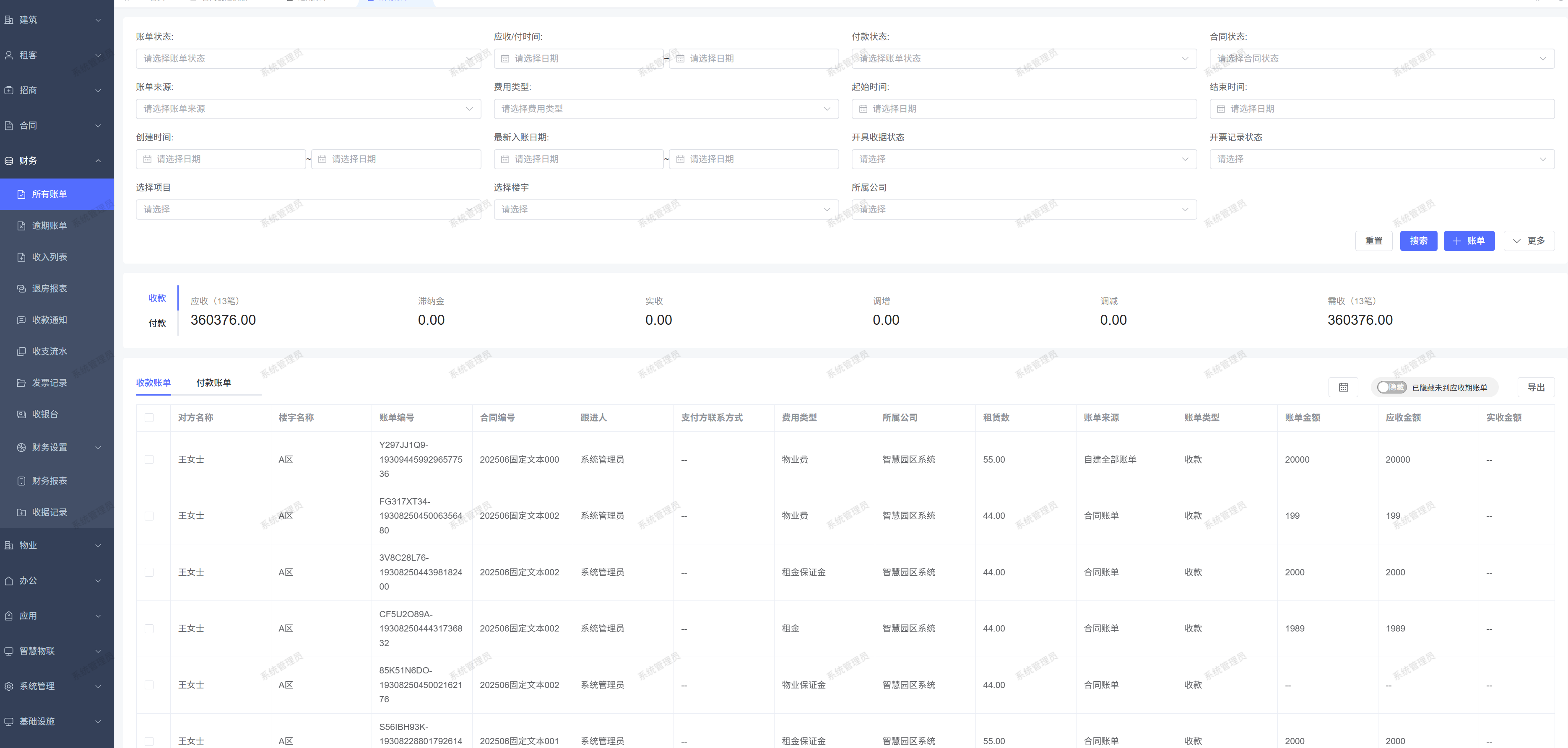 财务模块,由 xcmd-module-asset 后端模块的 org 包实现,主要有账单管理、收据发票等功能。如下图所示: