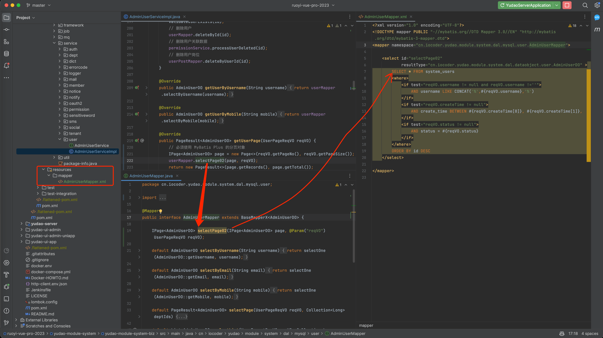 <mapper namespace="cn.iocoder.yudao.module.system.dal.mysql.user.AdminUserMapper">