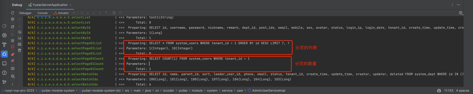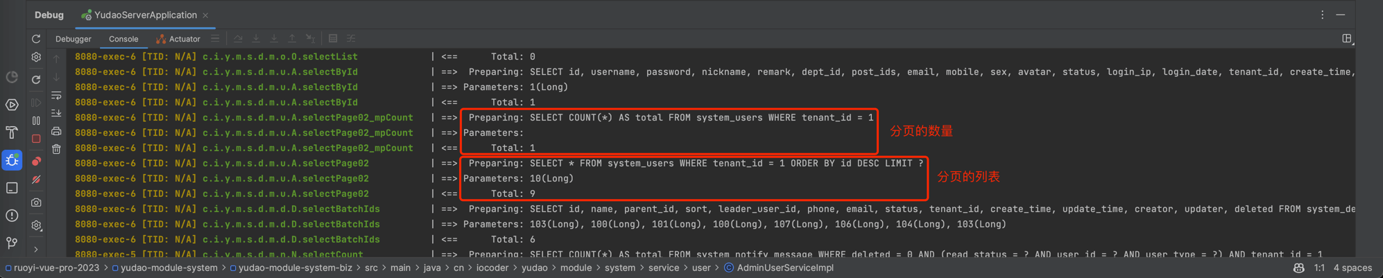 ③ 在 AdminUserServiceImplService 层,调用这两个方法,实现分页查询: