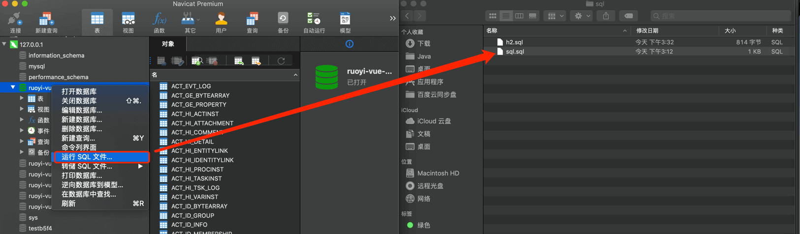 ④ 打开数据库工具,运行代码生成的 sql/sql.sql 文件,用于菜单的初始化。
