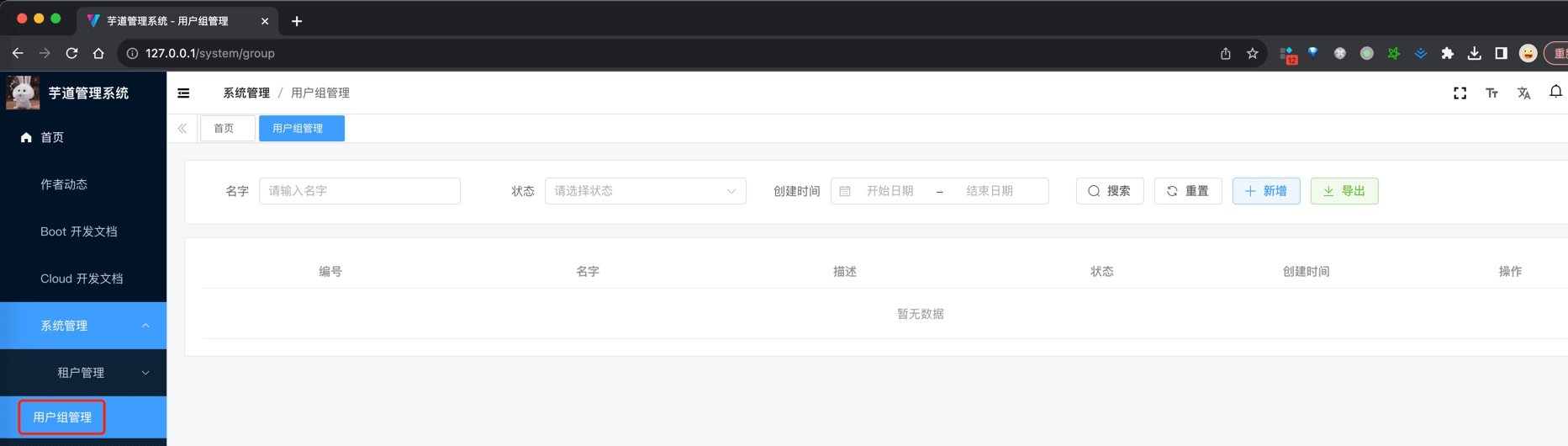 ③ 点击 [系统管理 -> 用户组管理] 菜单,就可以看到用户组的 UI 界面。