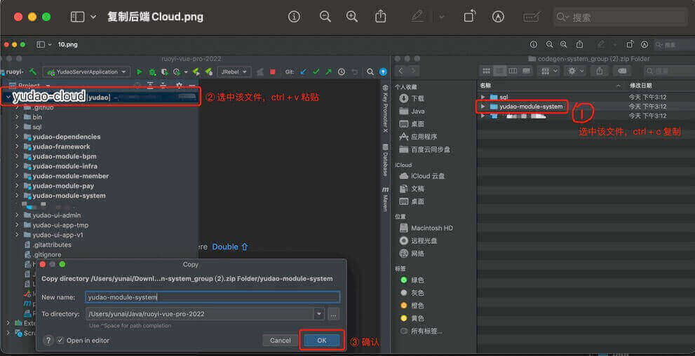 ① 将生成的后端代码,复制到项目中。操作如下图所示: