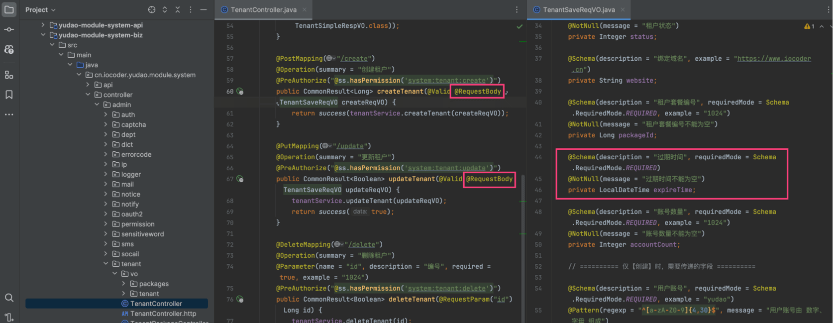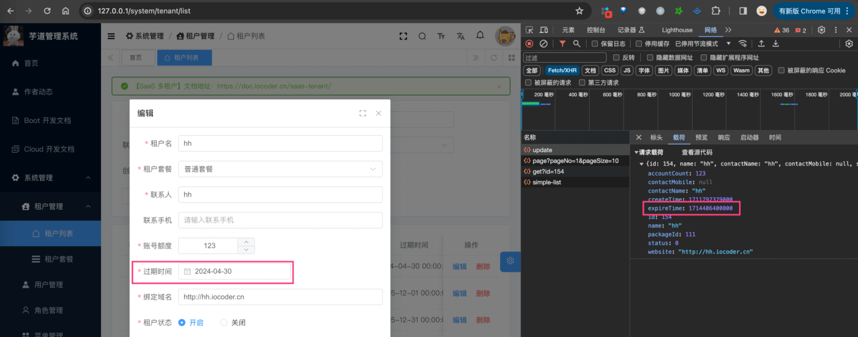 - views/system/tenant/TenantForm.vue 的expireTime参数: