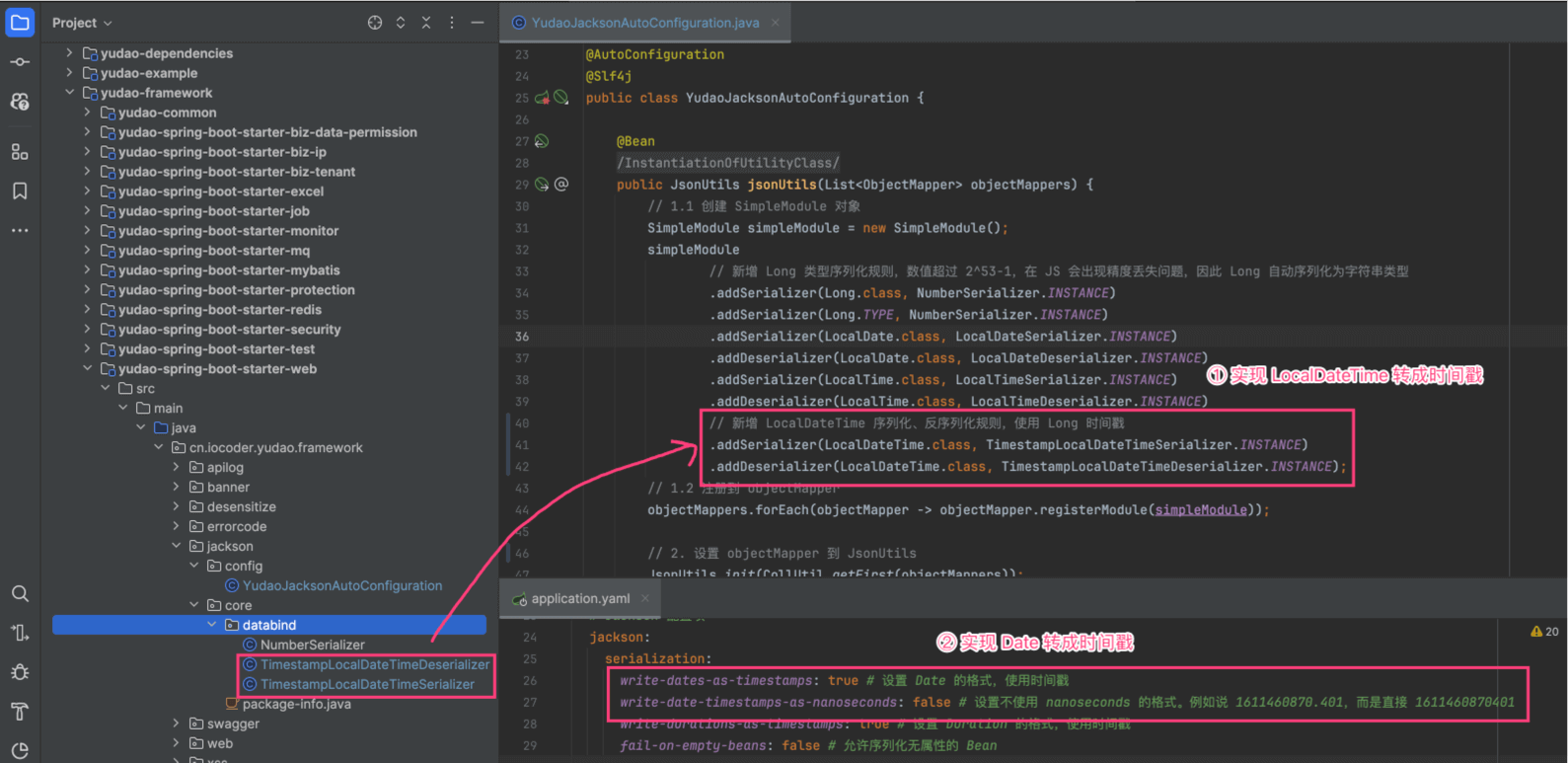 它是通过 LocalDateTime 自定义的 TimestampLocalDateTimeSerializer 和 TimestampLocalDateTimeDeserializer 实现,之后进行如下配置: