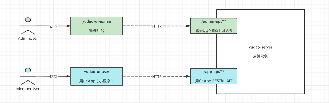管理后台,后端访问 /admin-api/** RESTful API 接口。