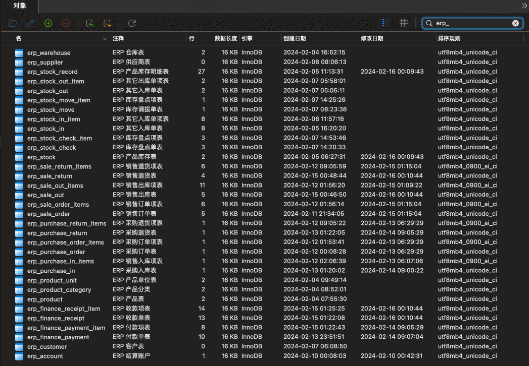 以 erp_ 作为前缀的表,就是 ERP 模块的表。