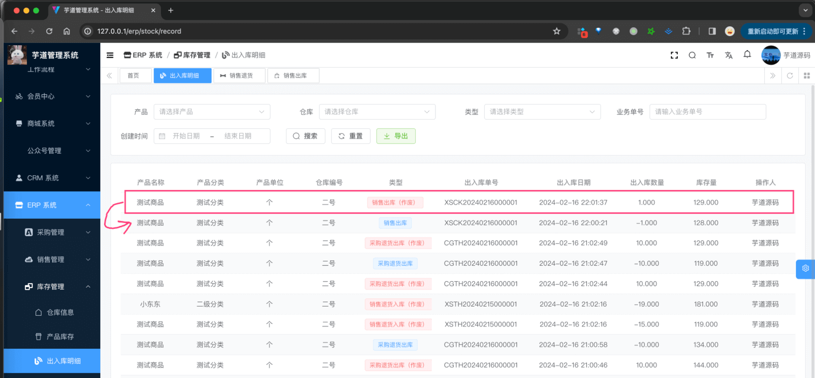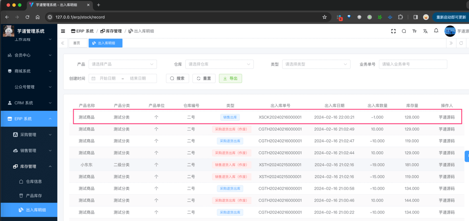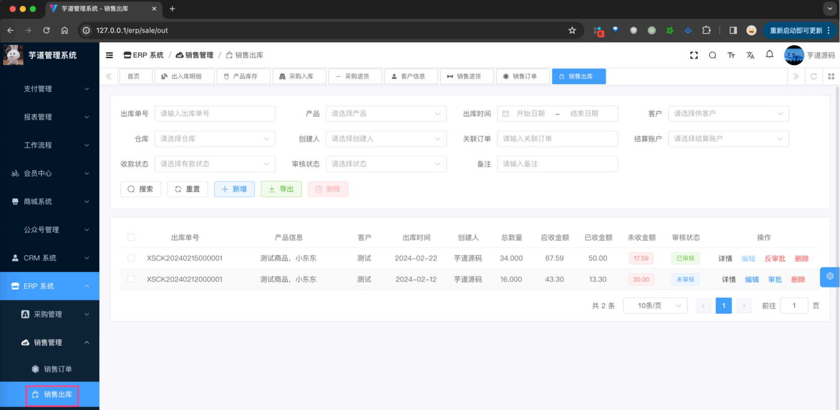 销售出库,由 ErpSaleOutController 提供接口,它会影响(减少)库存。总的来说,它的逻辑和 其它出库 基本一致,只是它是针对销售的出库。