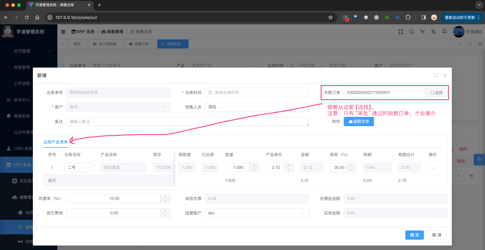 # 3. 销售出库