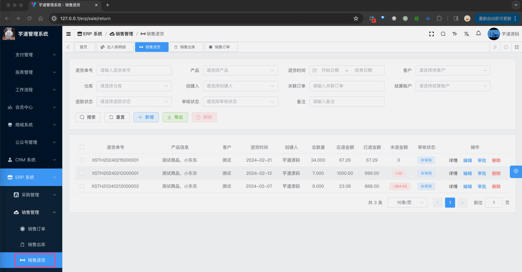 对应 [ERP 系统 -> 销售管理 -> 销售退货] 菜单,对应 xcmd-ui-admin-vue3 项目的 @/views/erp/sale/return 目录。