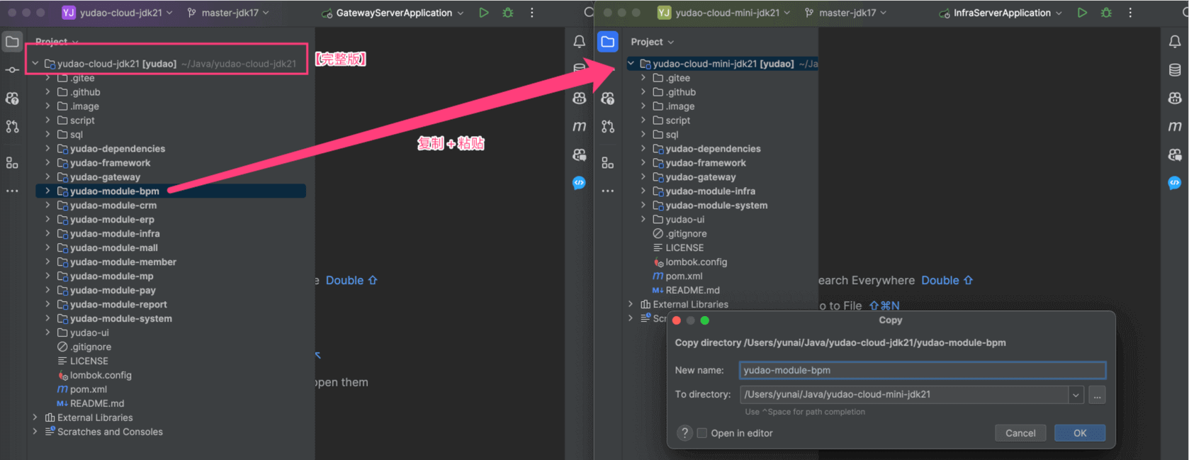 后端代码迁移,指的是将 【完整版】 的代码,复制张贴到 【精简版】 。