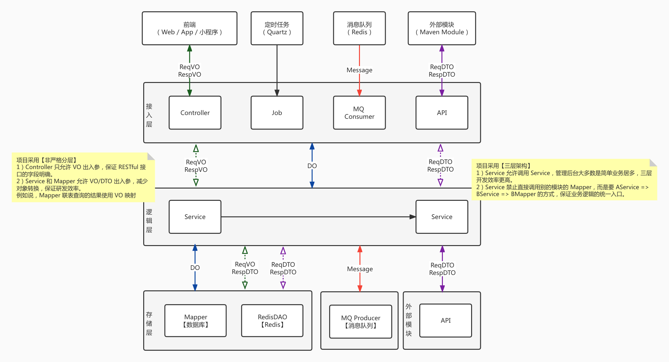 总结来说,每个模块采用三层架构 + 非严格分层,如下图所示: