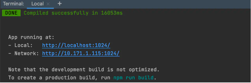 疑问:我是前端工程师,不想启动后端项目,怎么办? 可以将上述的 npm run local 命令,替代成 npm run front 命令。